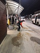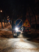 В связи с прогнозируемыми интенсивными и продолжительными осадками под утро районные комбинаты благоустройства провели превентивную обработку опасных участков улично-дорожной сети, основных магистралей, по которым проходят маршруты общественного транспорта, тротуаров, остановок общественного транспорта, подходов к пешеходным переходам.Это сделано для того, чтобы пескосмесь (состав которой усилен большей пропорцией соли из-за низкой температуры воздуха) начала работать сразу же с первыми снежинками и не дала образоваться накату и льду. Для превентивной обработки улиц коммунальщикам понадобилось 815 тонн песко-соляной смеси.