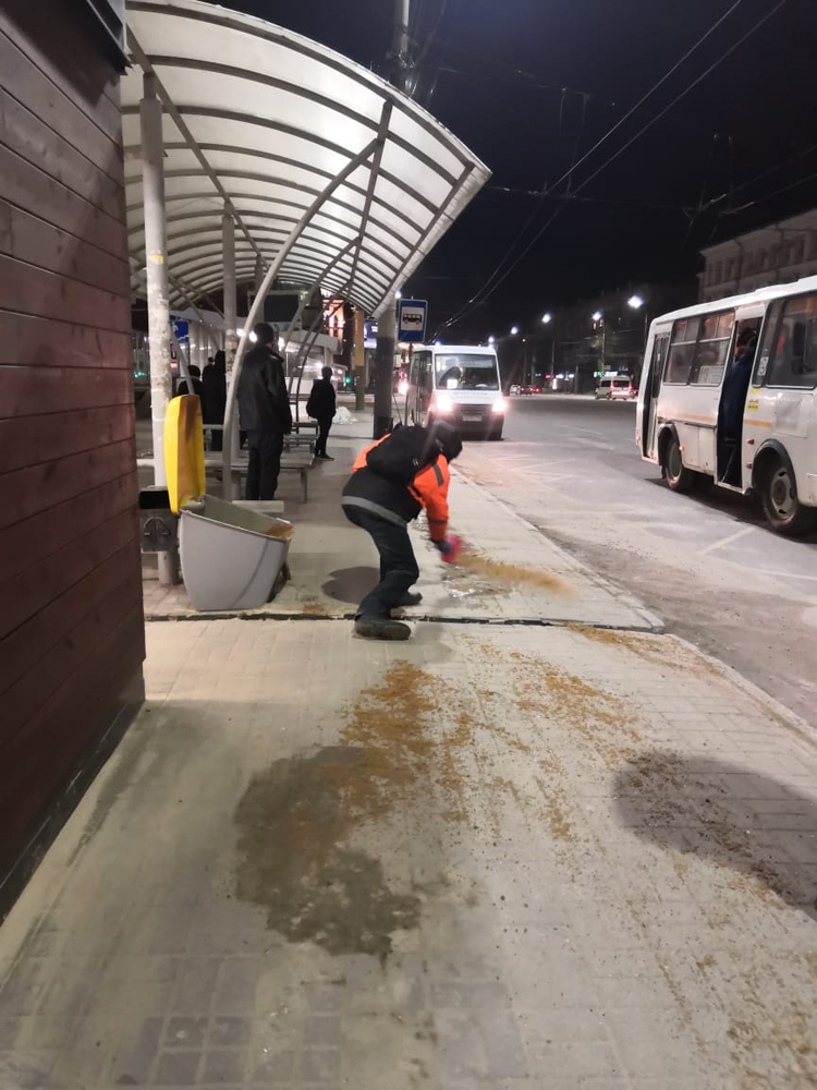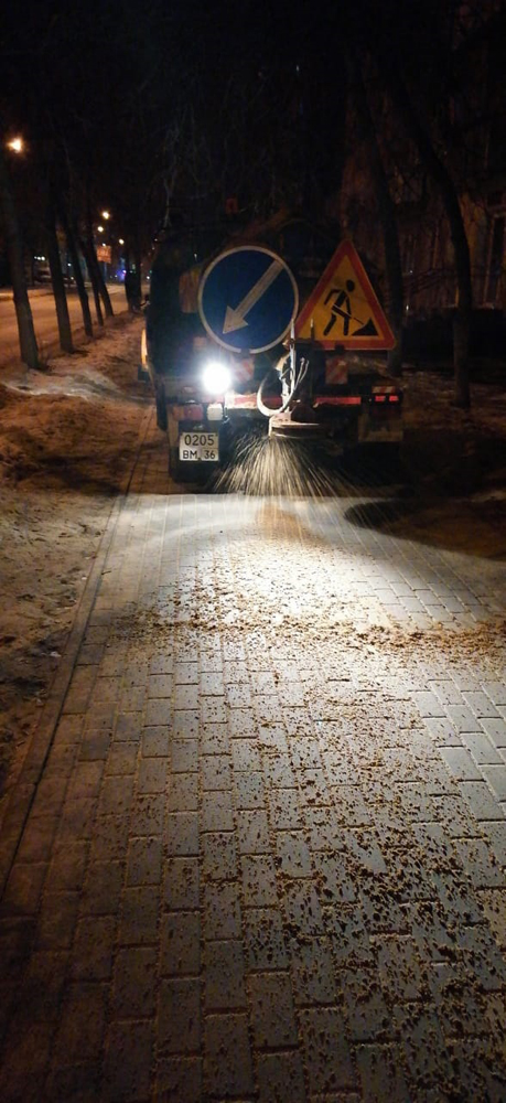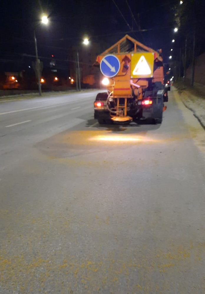 В связи с прогнозируемыми интенсивными и продолжительными осадками под утро районные комбинаты благоустройства провели превентивную обработку опасных участков улично-дорожной сети, основных магистралей, по которым проходят маршруты общественного транспорта, тротуаров, остановок общественного транспорта, подходов к пешеходным переходам.Это сделано для того, чтобы пескосмесь (состав которой усилен большей пропорцией соли из-за низкой температуры воздуха) начала работать сразу же с первыми снежинками и не дала образоваться накату и льду. Для превентивной обработки улиц коммунальщикам понадобилось 815 тонн песко-соляной смеси.