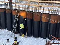 На объекте завершены работы по погружению трубошпунтованных свай.Напомним, что проектом предусмотрено погружение 122 трубошпунтов до проектной отметки, в настоящий момент подрядной организацией погружены все 122 трубошпунтованные сваи.