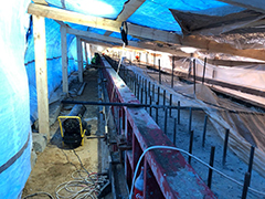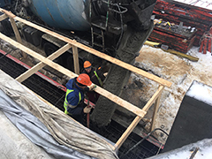 Кроме того, 12 февраля осуществлено бетонирование ригеля на опоре №2 (со стороны проспекта Революции), сейчас идёт уход за бетоном. На следующей неделе планируется приступить к армированию и бетонированию тринадцати подферменников на ригеле опоры №2. На опоре №1 (со стороны улицы Ленина) сейчас идёт устройство арматурных выпусков и герметизация стыков замков трубошпунта, а также осуществляется подготовка к обратной засыпке устоя опоры №1.