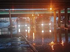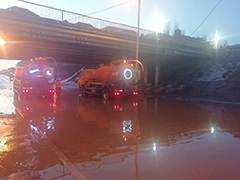 В связи с высокой плюсовой температурой, установившейся сегодня в Воронеже (до +7 градусов), происходит очень интенсивное таяние снега. В низинных местах образуются локальные подтопления.Так, сейчас в низинное место под путепроводом на Московском проспекте (бульвар Победы) вода прибывает настолько быстро, что оперативно перекачать ее не могут даже три насоса канализационно-насосной станции. В помощь им направлены два илососа МБУ "Городская дорожная служба". На время этих работ по отводу воды движение под путепроводом закрыто.