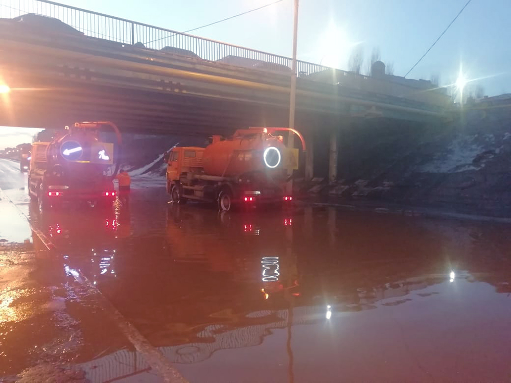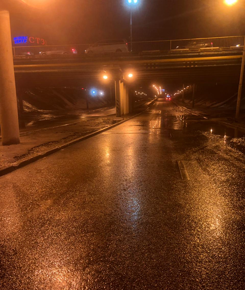 Муниципальные службы в сжатые сроки справились с этой тяжёлой проблемой, вода была отведена штатными системами и вспомогательной техникой Городской дорожной службы (ГДС) - специального муниципального учреждения, созданного главой города Вадимом Кстениным для помощи комбинатам благоустройства в ситуациях с подтоплениями. Для проведения работ понадобилось сразу две единицы службы ГДС.В настоящее время движение под путепроводом открыто в обычном режиме.