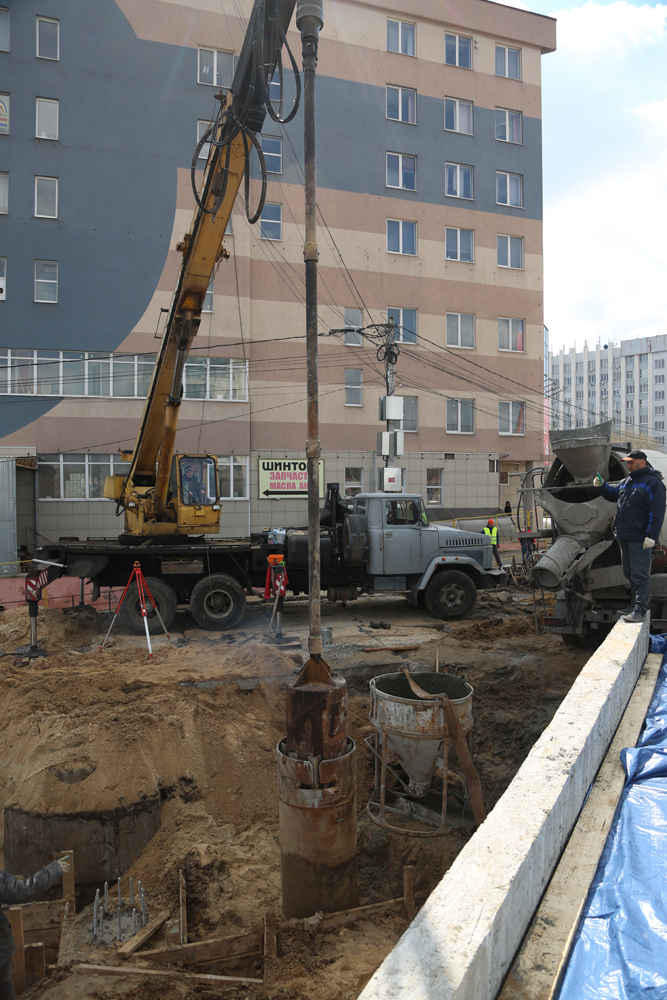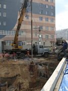 Сегодня на объекте завершены работы по устройству буронабивных свай (бурение и бетонирование) для устройства подпорных стенок (ПС-1 и ПС-2): забетонирована последняя, 25-я свая.Кроме того, на сооружении забетонированы все межбалочные швы, шкафные стенки на крайних опорах №№ 1 и 2, а также монолитные концевые участки с обеих сторон путепровода. Смонтированы переходные плиты на крайней опоре №2, произведено бетонирование левой консоли сооружения, идёт подготовка к бетонированию правой.