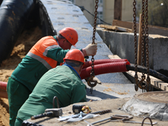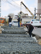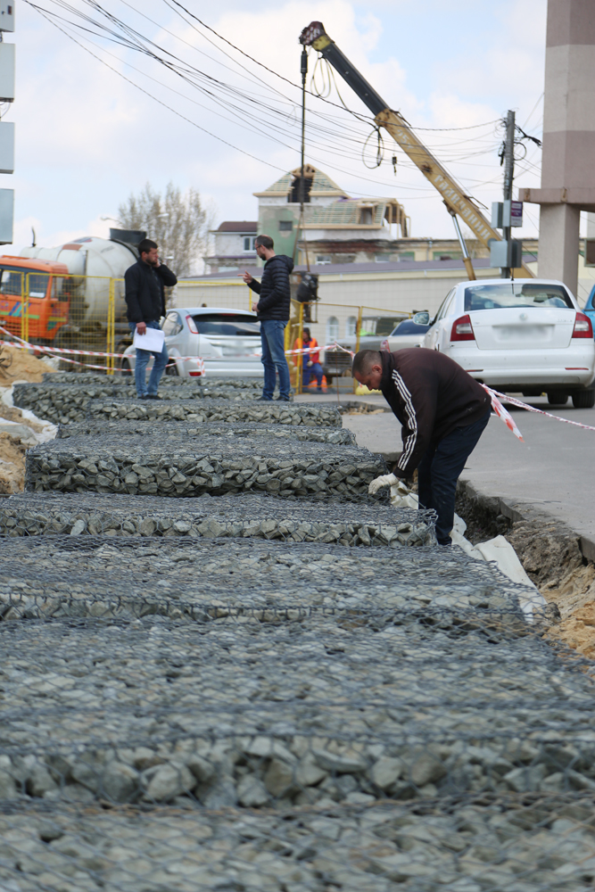 Кроме того, ведутся работы на сопряжениях к путепроводу, выполняется устройство подпорных стенок габионного типа (ПС-3 и ПС-4), готовится бетонная поверхность сооружения для устройства выравнивающего слоя.
