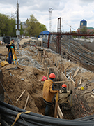 Сегодня на самом сооружении начали наносить уже второй слой гидроизоляции.Кроме того, продолжаются активные работы на подходах к путепроводу сразу с обеих сторон: и со стороны проспекта Революции, и со стороны улицы Ленина в полном объеме выработаны дорожные корыта, ведётся устройство песчано-подстилающего слоя. После завершения этого этапа подрядчик приступит к устройству щебеночного основания на подходах.