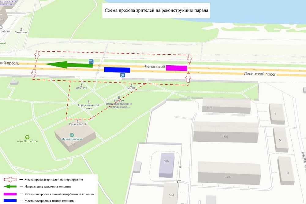 В связи с проведением 6 ноября в районе Музея-диорамы (Ленинский проспект, 94) военно-исторической реконструкции парада 1941 года: - - с 22:00 5 ноября до 13:30 6 ноября будет запрещена парковка транспортных средств на Ленинском проспекте (на участке от улицы Брусилова до улицы Арзамасской);