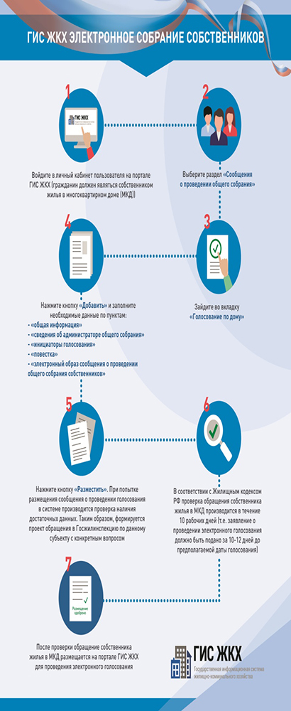 13.12.2022 Администрация городского округа город Воронеж извещает Вас о том, что по сведениям Государственной жилищной инспекции Воронежской области на 74 многоквартирных домах городского округа город Воронеж инициировано проведение общих собраний собственников помещений посредством электронных сервисов государственной информационной системы жилищно-коммунального хозяйства (далее – ГИС ЖКХ).Предлагаем оценить новые возможности, предлагаемые ГИС ЖКХ, ознакомиться с правилами регистрации в системе и принять участие в общих собраниях собственников помещений.