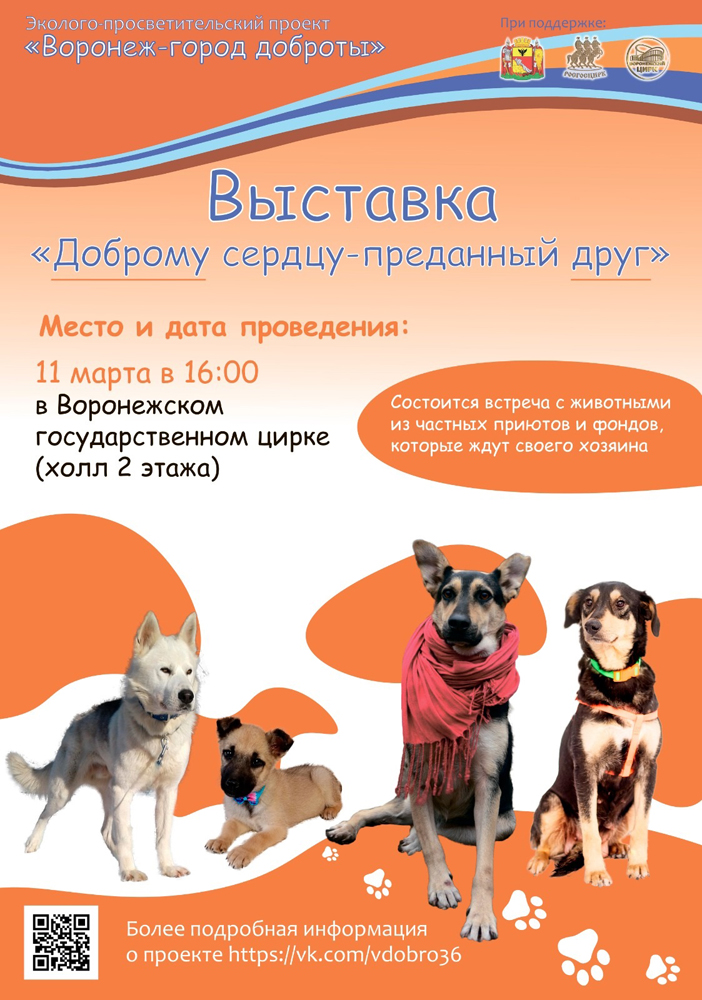 Напомним, что в 2023 году продолжается реализация проекта «Воронеж - город доброты». В рамках проекта проходят выставки, встречи и благотворительные мероприятия, направленные на помощь бездомным животным.