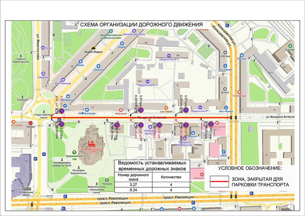 15.05.2023 В связи с проведением мероприятий в Благовещенском соборе будет временно запрещена парковка (и остановка) в центральной части города:- - с 7:00 16 мая до 20:00 18 мая – на участке улицы Фридриха Энгельса в районе дома № 14В по проспекту Революции;