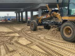 На пересечении улиц Минской и Остужева продолжается устройство основания будущей проезжей части под путепроводом, насыпи для организации съездов с сооружения, а также переустройство различных многочисленных коммуникаций. Начата подготовка к организации сетей наружного освещения – проводится устройство футляра под кабель. Вместе с тем, подрядчиками выполняются и другие виды работ, осуществляется вывоз строительного мусора.