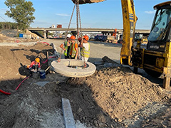 27.08.2023 Работы на объекте продолжаются, ранее набранные темпы не снижаются.На путепроводе на улице Остужева бригада работает в пришовных зонах – в соответствии с погодными условиями выполняется их подготовка и заполнение специальным материалом. Параллельно проводится укрепление насыпи путепровода, подготовка бетонной поверхности к покраске. Ранее была установлена металлическая рамная П-образная опора (РМП), которая служит для монтажа дорожных знаков, системы фотовидеофиксации и т.д.