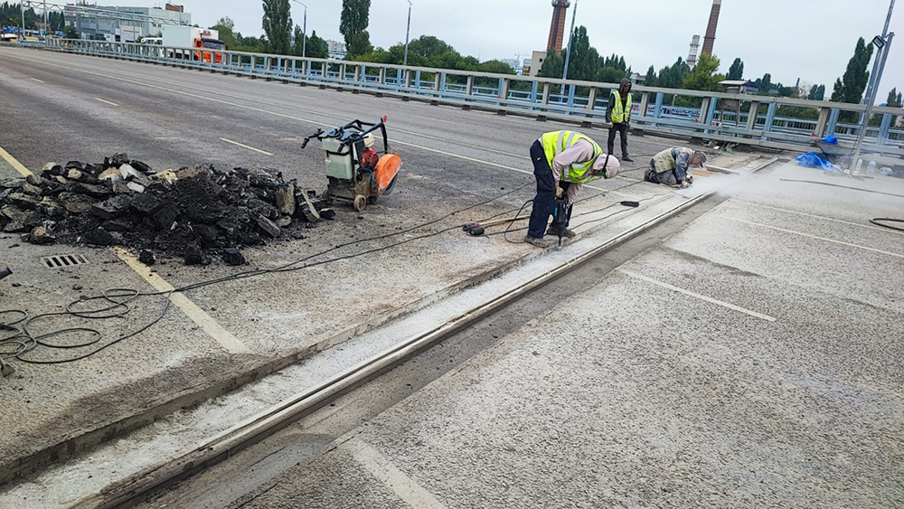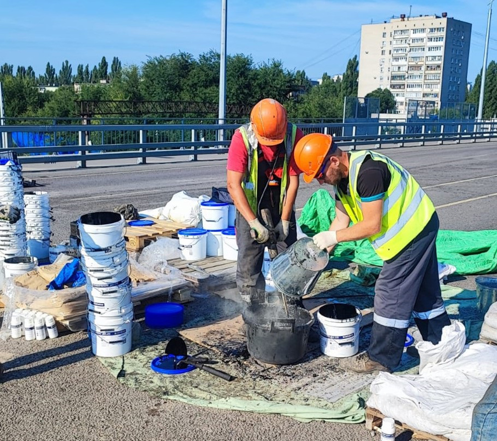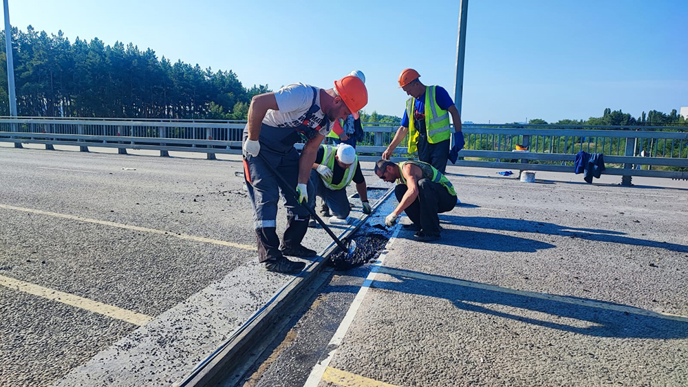 27.08.2023 Работы на объекте продолжаются, ранее набранные темпы не снижаются.На путепроводе на улице Остужева бригада работает в пришовных зонах – в соответствии с погодными условиями выполняется их подготовка и заполнение специальным материалом. Параллельно проводится укрепление насыпи путепровода, подготовка бетонной поверхности к покраске. Ранее была установлена металлическая рамная П-образная опора (РМП), которая служит для монтажа дорожных знаков, системы фотовидеофиксации и т.д.
