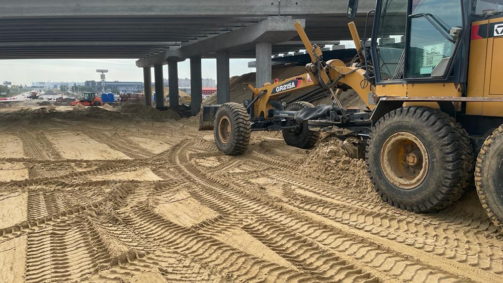 На пересечении улиц Минской и Остужева продолжается устройство основания будущей проезжей части под путепроводом, насыпи для организации съездов с сооружения, а также переустройство различных многочисленных коммуникаций. Начата подготовка к организации сетей наружного освещения – проводится устройство футляра под кабель. Вместе с тем, подрядчиками выполняются и другие виды работ, осуществляется вывоз строительного мусора.