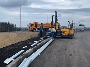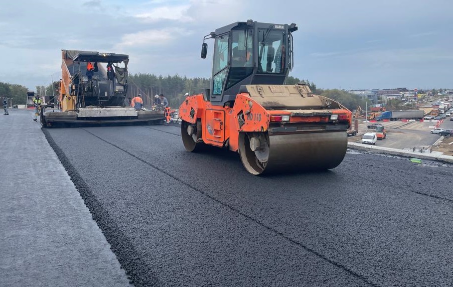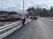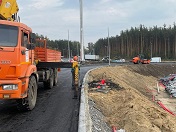 02.10.2023 На пересечении улиц Минской и Остужева продолжается строительство съездов транспортной развязки: ведется устройство основания дорожной одежды из песка толщиной 20 см, слоя покрытия из горячего пористого крупнозернистого асфальтобетона, планировка и укрепление откосов и обочин земляного полотна растительным слоем грунта, установка барьерного ограждения.Вместе с тем, ведутся работы по строительству дождевой канализации и наружного освещения, переустройству кабельных линий.
