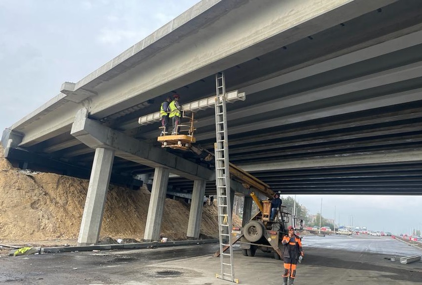 На путепроводе выполняется устройство защитного слоя бетона, дренажа проезжей части, окраска балок пролетных строений и др. Готовность самой конструкции составляет уже около 85 процентов.