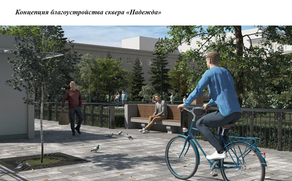 В сквере планируется обустроить дорожки и тротуары, заменить освещение, установить новые малые архитектурные формы и крышки люков. Также в рамках озеленения установят приствольные решетки, высадят кустарники и газон.