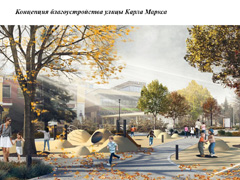 На пешеходном бульваре, в случае победы, проведут масштабное озеленение и зонирование прогулочной зоны – обновят сквер букинистов, обустроят площадку для музыкантов, создадут новые арт-объекты, входные группы, места для отдыха и детские площадки, а также появится место для выставки картин.
