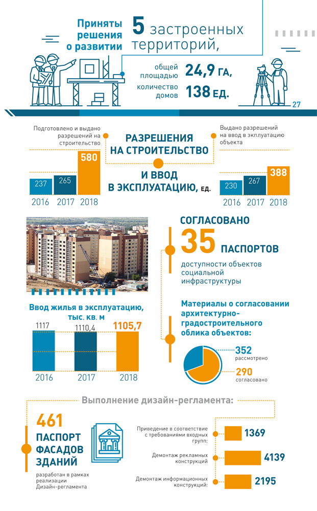 – Вместе со строительными компаниями мы продолжаем работу по развитию застроенных территорий. В 2018 году принято 5 соответствующих решений для территорий общей площадью 25 га. В процессе развития – 7 территорий. Кроме того, мы – одни из немногих в России, кто не остановил реализацию программы по расселению аварийного жилья. В прошлом году под расселение пошло 6,7 тыс. кв. м, 216 семей получили новые квартиры, оплаченные из бюджетов города и области. Цена вопроса – 378 млн. рублей, – рассказал Вадим Кстенин.