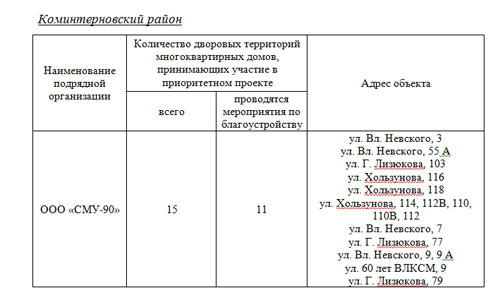31.08.2017С 26.07.2017 подрядные организации, ставшие победителями электронного аукциона - ООО «Дорожник», ООО «СМУ-90», приступили к выполнению работ по замене бордюрного камня, ремонту дорожного покрытия, устройству тротуара на дворовых территориях многоквартирных домов, а именно: