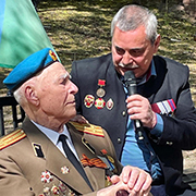 После торжественного возложения цветов члены Воронежского областного отделения Межрегиональной общественной организации «Союз десантников» поздравили с Днем Победы своего ветерана - Николая Васильевича Михайлина, воевавшего минометчиком в составе сначала 12 ВДБр 6 Воздушно-десантного корпуса, а затем - в составе 100 стрелковой (в дальнейшем-десантной) дивизии, в том числе в подразделении военной контрразведки СМЕРШ.