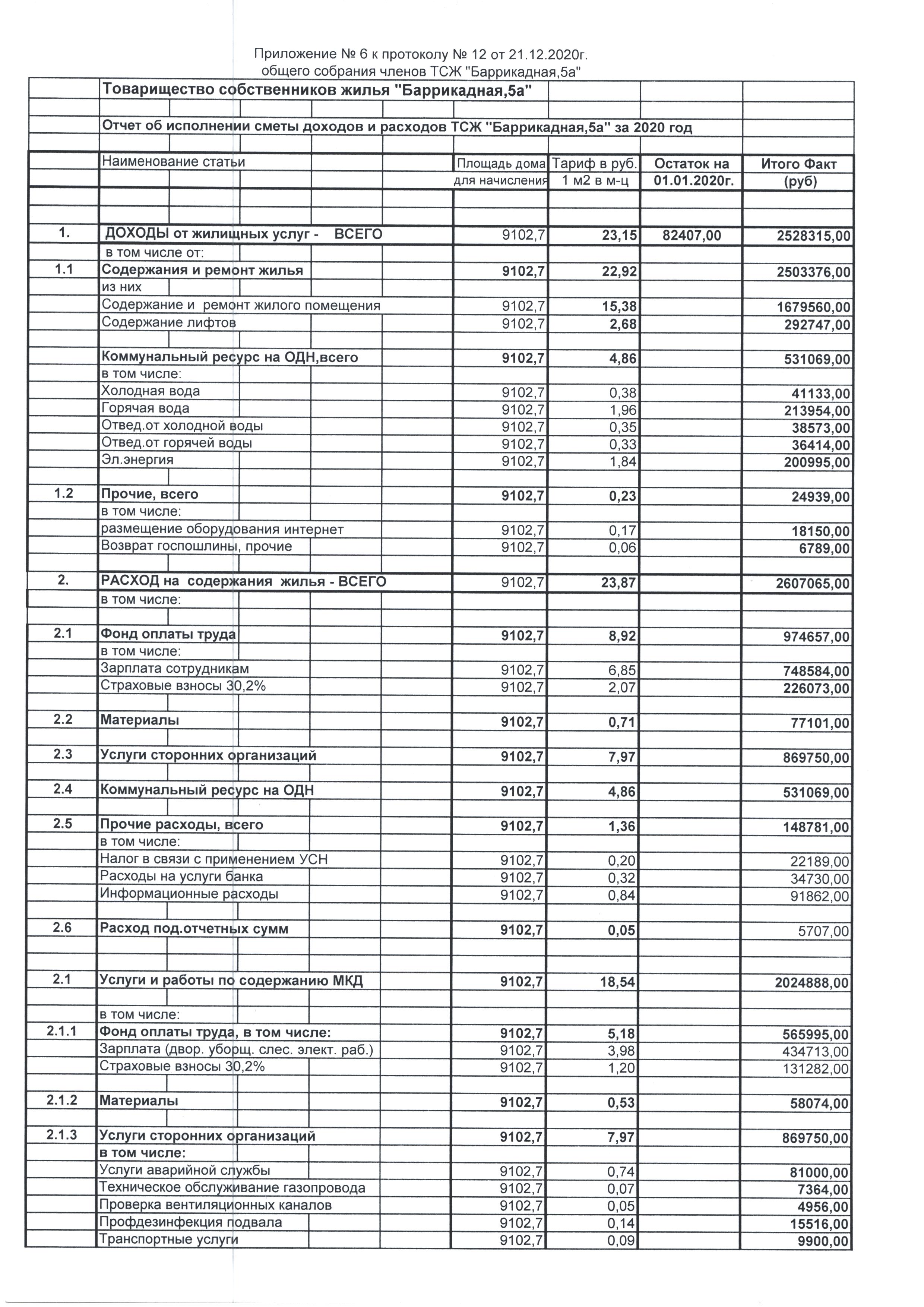 Отчет Правления ТСЖ «Баррикадная, 5а» о проделанной работе за 2020 год