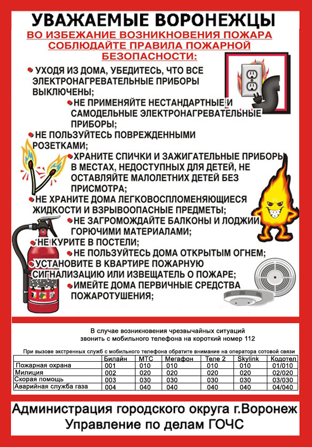 Защитим себя от пожара!Каждый день мы имеем дело с огнем. Но очень часто по различным причинам он выходит из-под контроля человека, становится неуправляемым и превращается в грозного врага - пожар, который приносит людям огромные потери и несчастья.За 9 месяцев 2012 года в Воронеже зарегистрировано 483 пожара, из них – 378 в жилом секторе. -