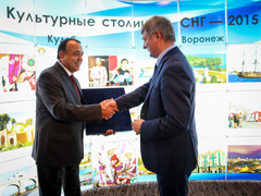 – Прежде всего, я хотел бы поблагодарить организаторов за выбор Воронежа в качестве культурной столицы СНГ в 2015 году. Для нас, конечно, это огромная ответственность. Но, тем не менее, это еще и настоящий праздник. И мы будем рады видеть на этом празднике всех, кто хочет познакомиться с нашим удивительным городом и его жителями, – сказал мэр. – Мероприятия, которые пройдут в Воронеже, будут способствовать дальнейшему обогащению наших культур, подчеркнут их самобытность и национальный колорит.