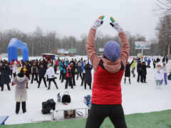 После теплых напутствий, спортсмены оправились на лыжню, а болельщикам предложили поучаствовать в фитнес-разминке. Движения показывала автор популярного проекта «Зарядка» Надежда Панарина. Зрители с удовольствием повторяли упражнения, а потом выстроились в огромный круг и водили хоровод. После физической нагрузки можно было подкрепиться – на стадионе работала полевая кухня.