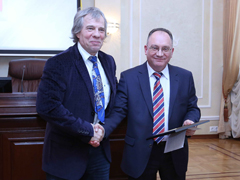 Затем слово было предоставлено Владимиру Астанину, который доложил об основных итогах 2014 года в строительной сфере. По его словам, в 2014 году был зафиксирован рекорд по объемам строительства.