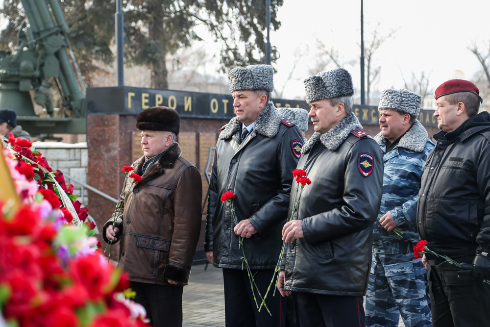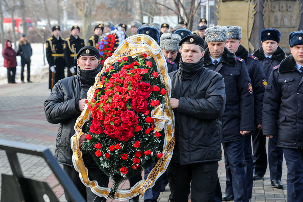 23 февраля состоялась торжественная церемония возложения венков и цветов к стеле «Воронеж – город воинской славы». В мероприятии приняли участие представители исполнительной и законодательной власти области и города, силовых структур, правоохранительных органов, Воронежской и Лискинской епархии, общественных организаций и др.