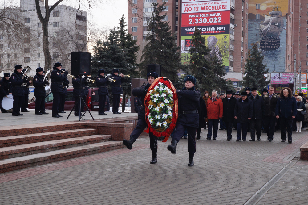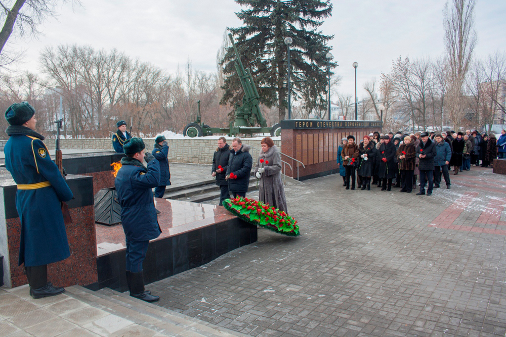 Делегацию от городской администрации возглавил мэр Воронежа Александр Гусев. После возложения венков и цветов рота почетного караула произвела оружейный залп и зазвучал гимн Российской Федерации.