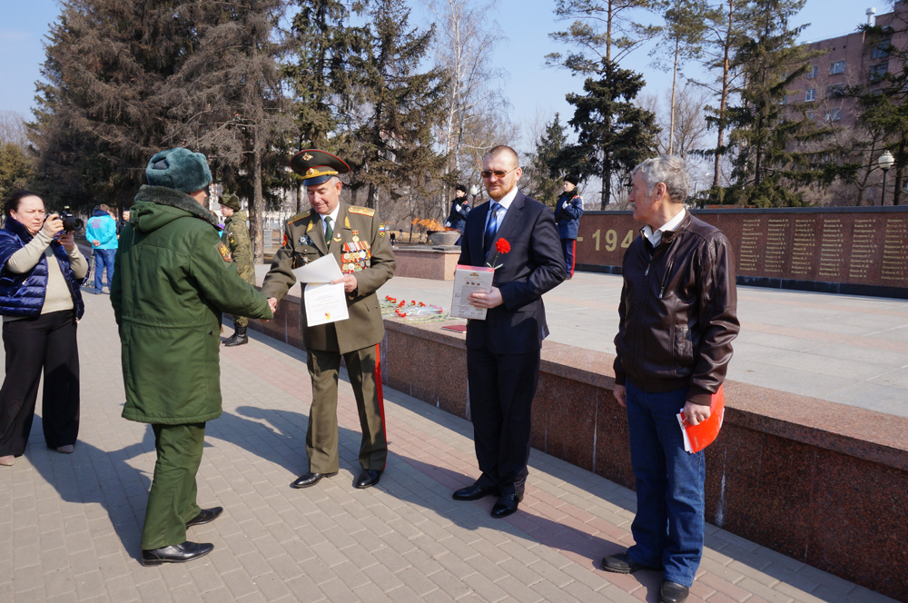 В Коминтерновском районе на мемориальном комплексе Памятник Славы прошла торжественная церемония передачи капсулы с землей, взятой с мест сражений.