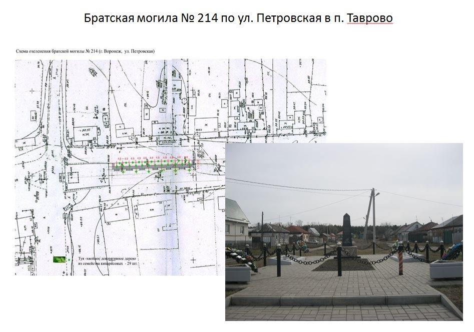 - - братская могила № 214 в п. Таврово, ул. Петровская;