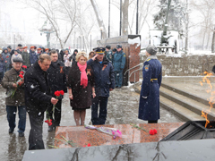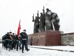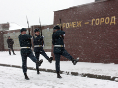 Участники торжественного мероприятия возложили венок к памятнику воинам, сражавшимся за город Воронеж. Почетный караул прошел маршем с отданием воинских почестей павшим героям.