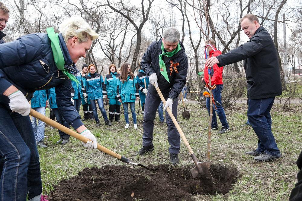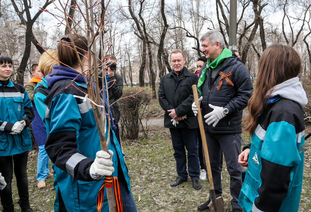 Глава Воронежа принял участие в посадке липовой аллеи и уборке мусора.
