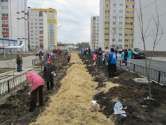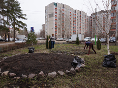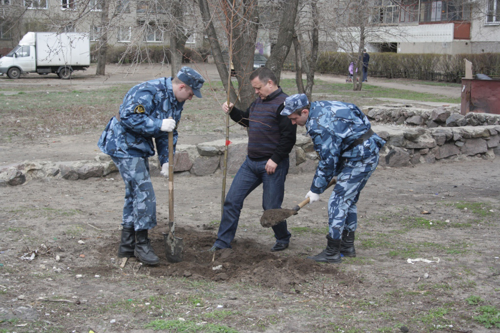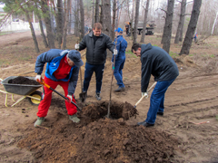 Руководитель управы Леонид Беляев в этот день не только проехал с инспекцией по всей территории района, но и принял непосредственно участие в уборке и посадке деревьев.