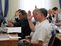 На повестке дня было 25 вопросов, решения по которым в основном принимались единогласно – депутаты одобрили предлагаемые проекты. В частности парламентарии проголосовали за проведение публичных слушаний по отчету об исполнении бюджета городского округа за 2014 год. Мероприятие состоится 19 июня в 10:00 в большом зале Думы. Также была утверждена дата проведения публичных слушаний по проекту решения Думы «О внесении изменений в Устав городского округа горд Воронеж» – 14 июля 2015 года.