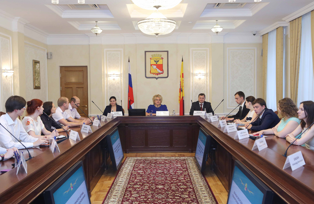 В это день в малом зале мэрии собрались члены Молодежного совета при администрации Воронежа, педагогических отрядов, представители советов молодых специалистов предприятий, руководители военно-патриотических клубов, детских и молодежных организаций и др.