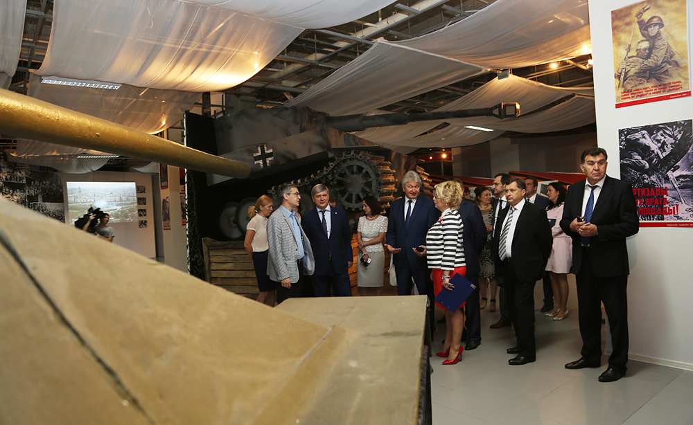 Мероприятие прошло в «Event hall» Сити-парка «Град». Здесь же, на 1 этаже, проходит выставка «Помни… Мир спас советский солдат!». Экспозиция рассказывает об ужасах фашизма и разгроме нацистов советскими войсками. Зрителям представлены 9 тематических композиций, в числе которых – «Приход к власти фашистов», «Массовые репрессии. Концлагерь», «Преступления фашизма против человечества», «Смертельная схватка и цена Победы». Именно со знакомства с данной выставкой и начал свое участие в образовательном форуме Александр Гусев. Экскурсию провел начальник научного отдела Российского военно-исторического общества Юрий Никифоров.