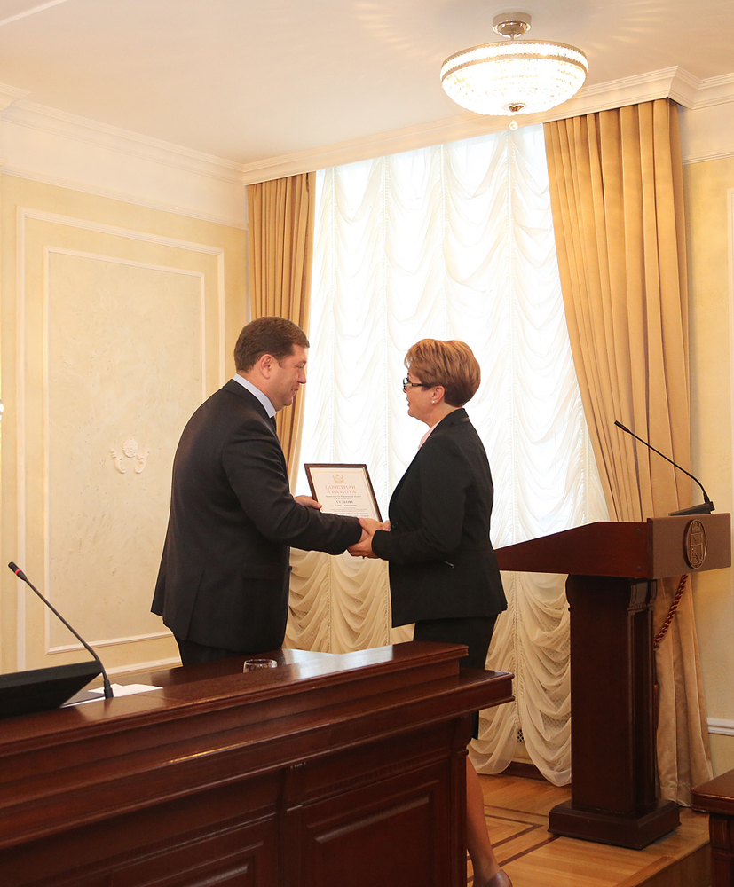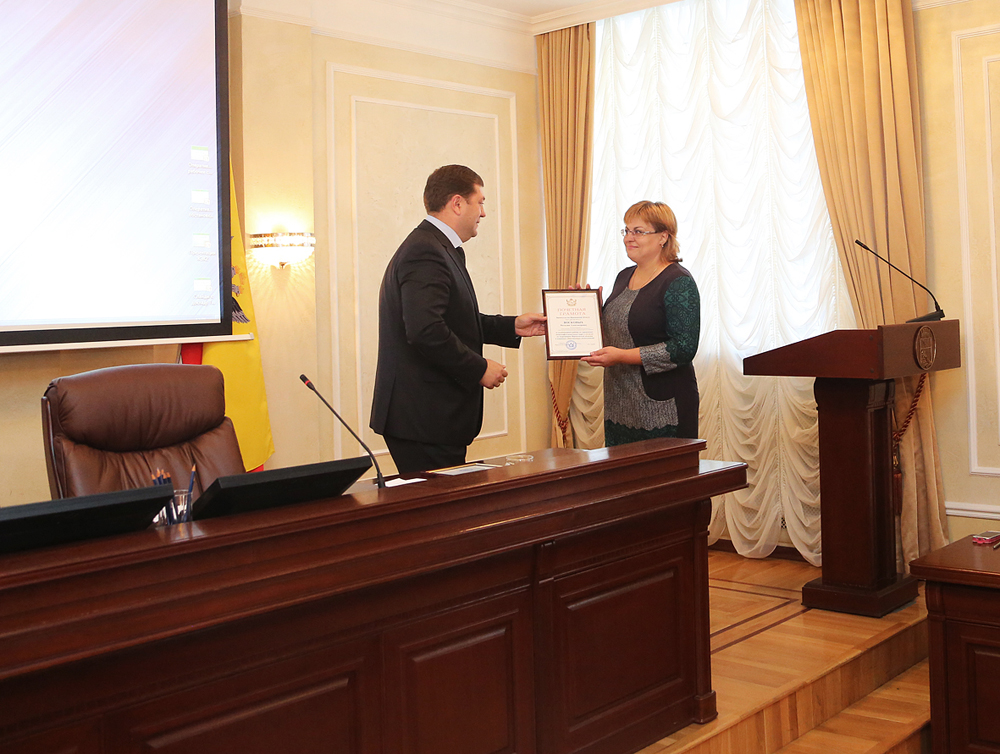 В самом начале заседания Сергей Крючков вручил благодарственное письмо Роману Красину, который на прошлой неделе спас девушку, прыгнувшую с Чернавского моста.