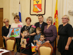 В свою очередь, члены семьи Кулешовых-Лазаревых передали членам совета подарок – картину, нарисованную одним из приемных детей семьи.
