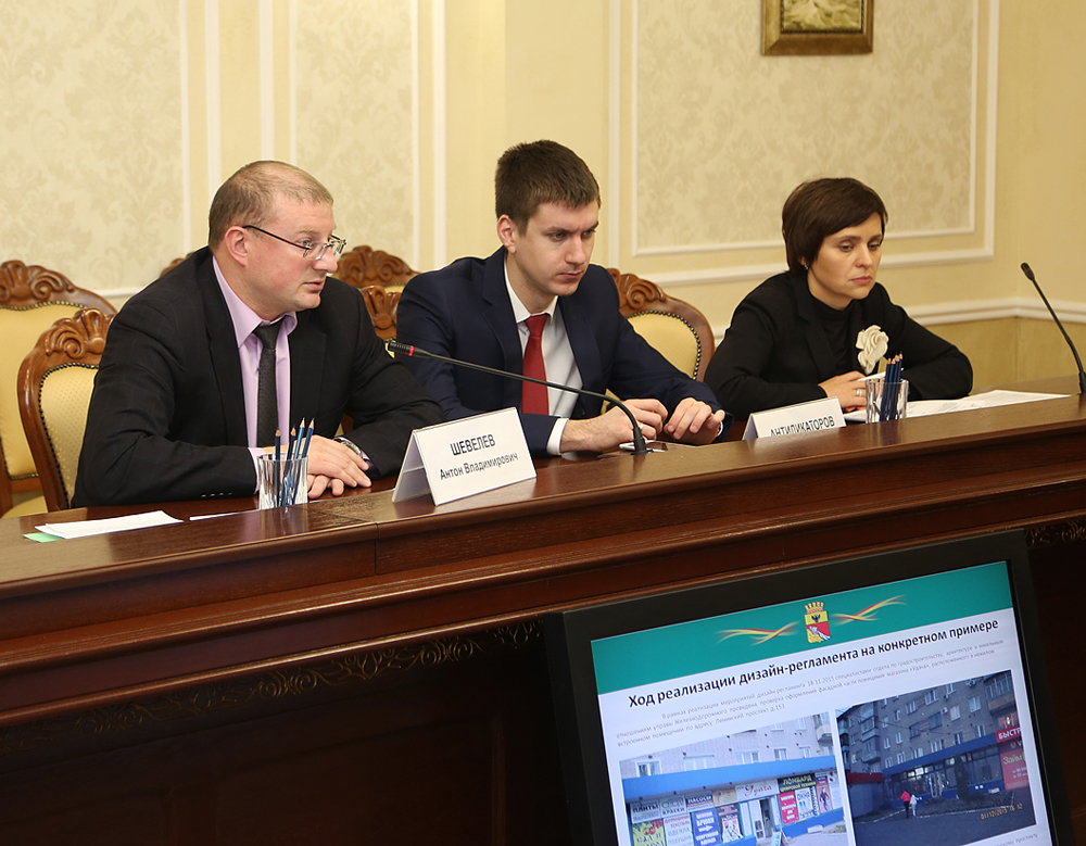 На совещании были рассмотрены вопросы исполнения подготовленного плана мероприятий с декабря 2015 по февраль 2016 года, согласно которому определен порядок действий и ответственные исполнители по реализации дизайн - регламента в отношении 20 центральных улиц Воронежа. План был подготовлен по поручению, которое было дано на прошлом ноябрьском совещании мэром Александром Гусевым.
