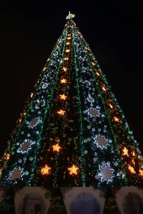 Конечно, основным событием вечера стало открытие главной городской елки. Когда наступил торжественный момент, площадь на несколько секунд замерла в ожидании, затем символ Нового года засветился сотнями разноцветных цветов, а в руках людей заискрились вспышки фотоаппаратов. С присутствующими постоянно фотографировались Деды Морозы, Снегурочки и ростовые куклы.