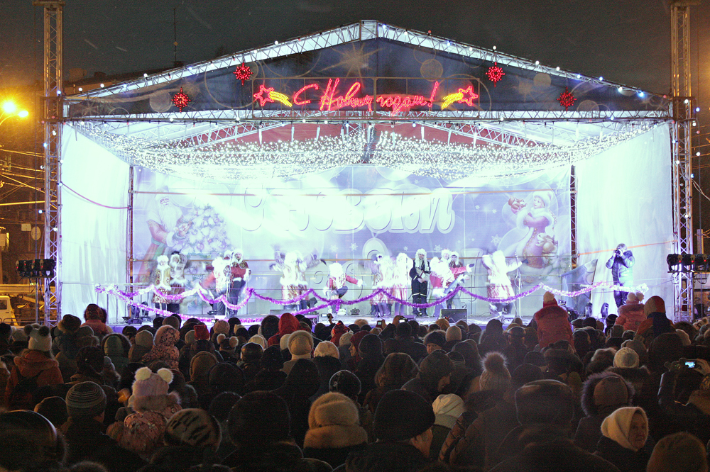 Открылся праздник ярким новогодним представлением «12месяцев», которое больше всего понравилось детям. Затем публика вместе с выступающими спела новогодние песни, а студия современного танца исполнила хореографические композиции. Также зрители смогли увидеть световое и лазерное шоу.