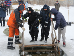 - Безопасность купающихся будут обеспечивать сотрудники управления по делам ГО и ЧС, среди которых есть и водолазы, также будет организовано дежурство скорой помощи, - рассказал заместитель начальника поисково-спасательного отряда МКУ «Управление по делам ГО и ЧС» Андрей Студенко. – В течение дня мы проверяем проруби, удаляем все посторонние предметы со дна: находим в основном бутылки, кирпичи, жестяные банки.