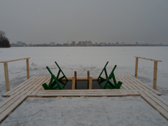Так управой района были оборудованы два традиционных места для массового купания – это проруби вблизи Адмиралтейской площади и санатория имени Максима Горького.
