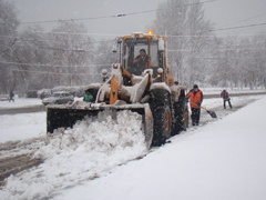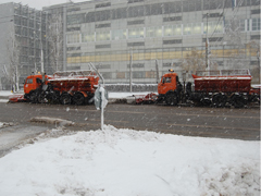 В ночь с 17 на 18 января на борьбу с непогодой вышли 11 единиц техники. Вывозился снег с остановок, щетками подметались второстепенные улицы, посыпались территории остановок, перекрестков и подъемов.