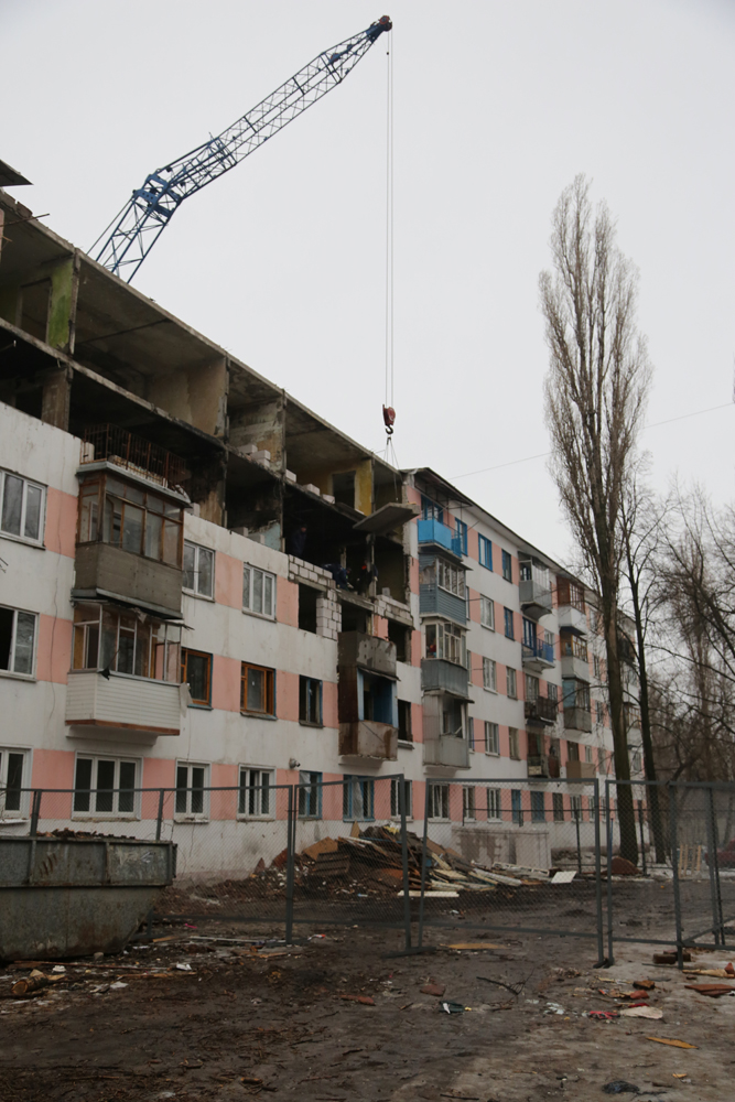 Прямо во дворе дома по улице Космонавтов, 52 Александр Викторович провел совещание, в котором также приняли участие вице-мэр по градостроительству Владимир Астанин, руководитель управления строительной политики Виктор Владимиров, руководитель управления ЖКХ Игорь Черенков, сотрудники управления по делам ГО и ЧС, представители ВГАСУ и Домостроительного комбината. Застройщик является подрядной организацией, восстанавливающей разрушенный дом.