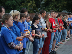 Далее все присутствующие направились в парк «Алые паруса», где представители Воронежской православной духовной семинарии провели панихиду в память о погибших на полях сражений, а курсанты Воронежского института ФСИН России спустили на воду «Венок Памяти». Из свеч участники акции выложили слово «Память».
