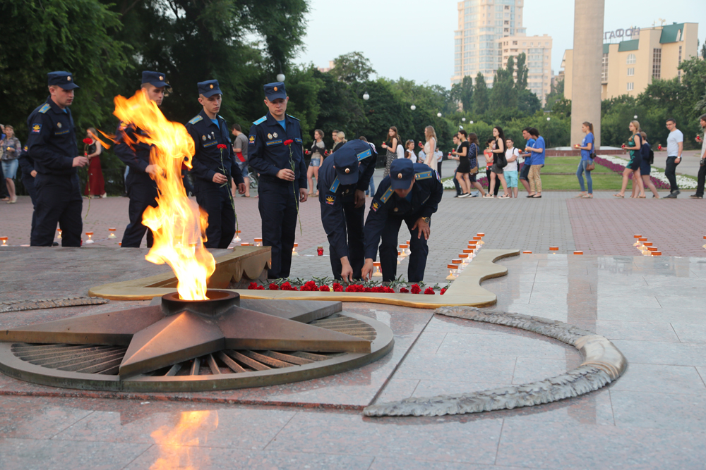 22 июня в четыре часа утра на площади Победы собрались студенты и курсанты воронежских вузов, жители, представители Воронежской митрополии, молодежных объединений, администрации города для того, чтобы почтить память воинов павших в годы кровопролитной войны и отдать дань уважения ныне живущим ветеранам.